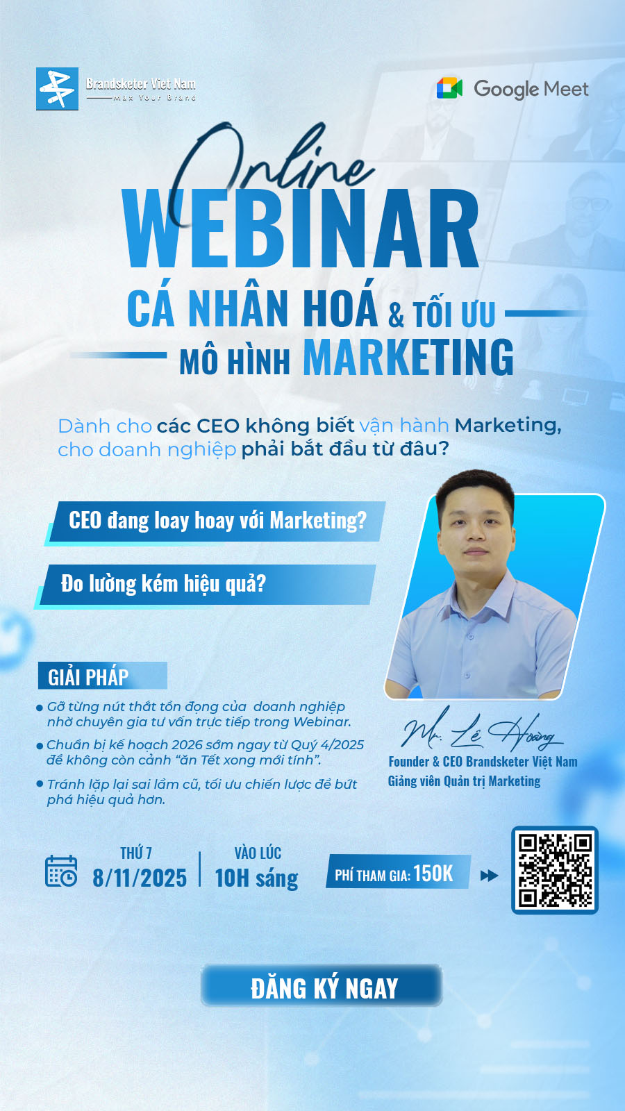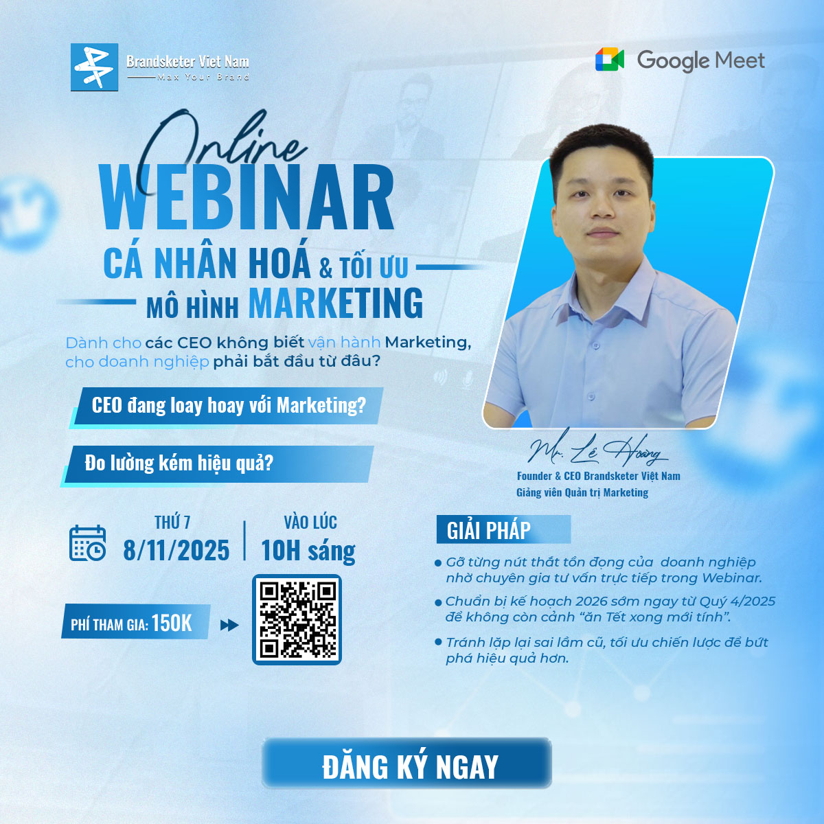 Trong Webinar ngày 08/11/2025, các chuyên gia từ Brandsketer sẽ giúp anh/chị CEO và chủ doanh nghiệp: